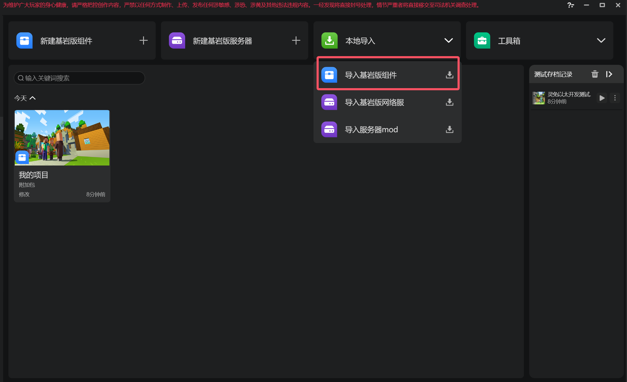 点击顶部导航栏下载测试环境后,在MCS里导入它。
