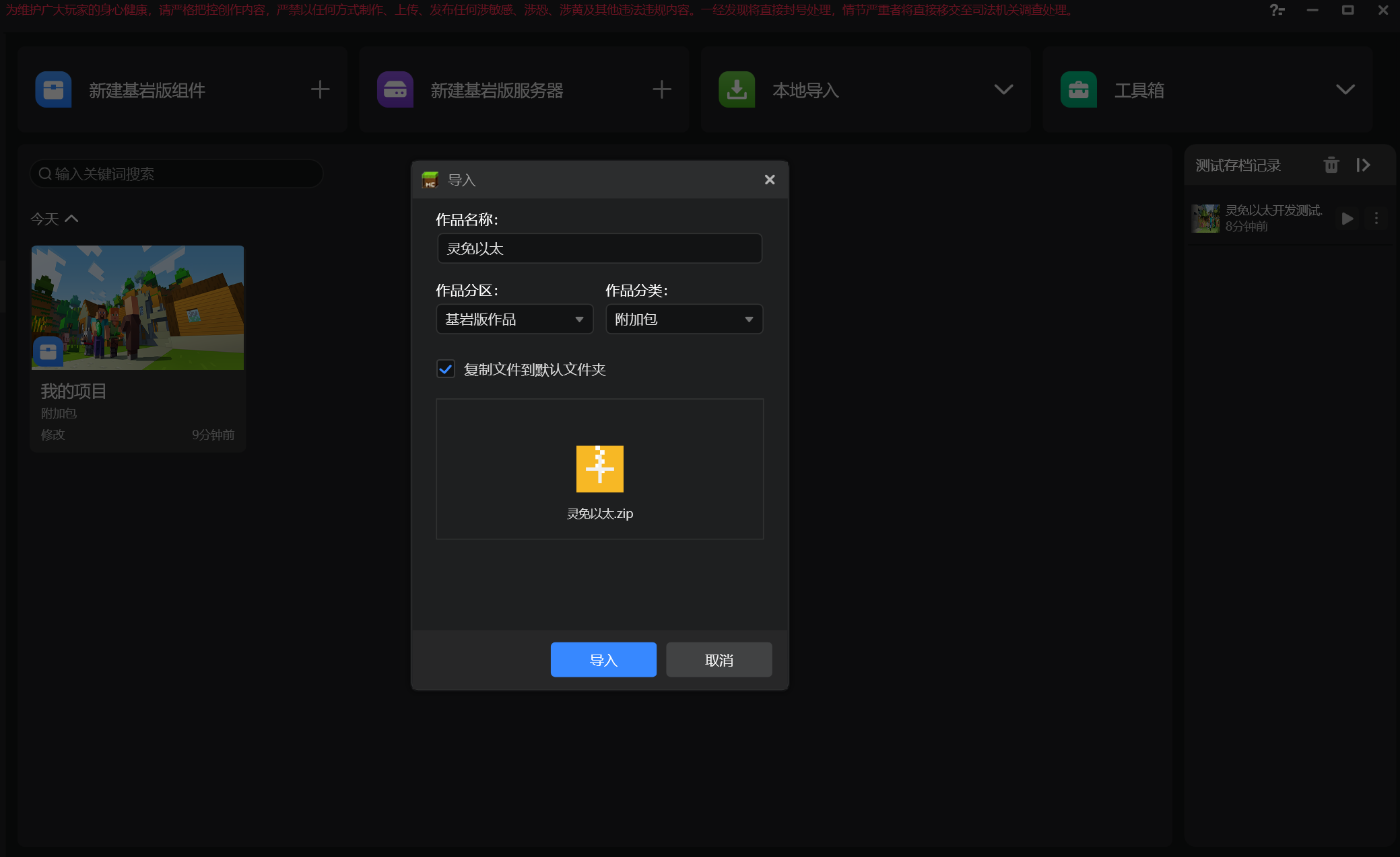 在行为包behavior_pack_***的根目录中创建config文件夹(即和脚本文件夹同目录),在文件夹内新建文件netease_require.json.给自己的脚本设置灵免一台LingmienAether的依赖项。