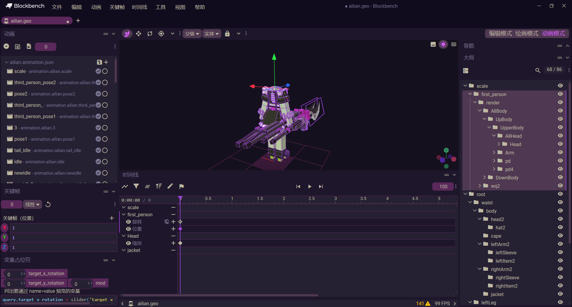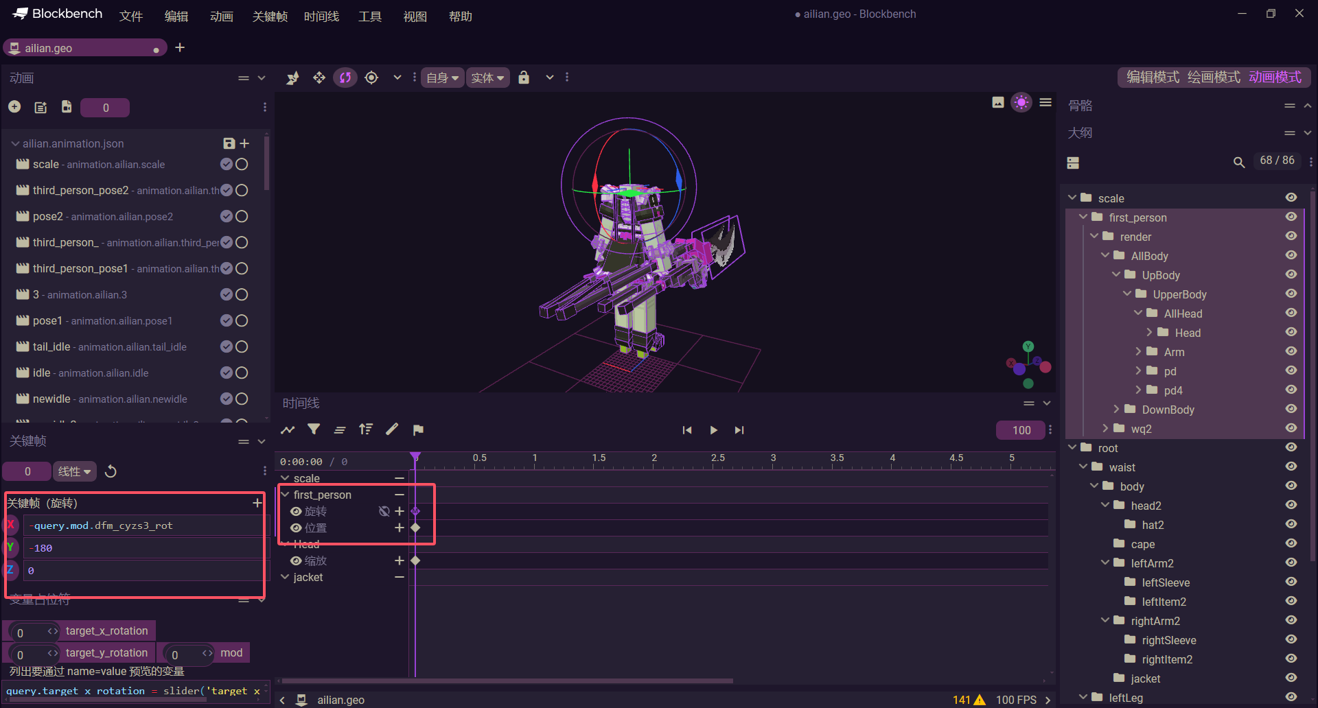 - first_person_idle的first_person骨骼的旋转应当固定填写为(-query.mod.dfm_cyzs3_rot, -180, 0)