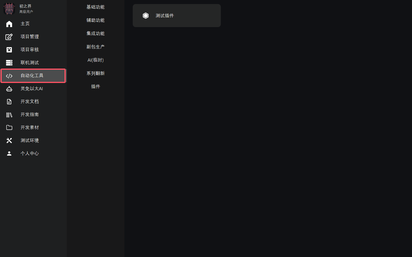 点击左侧分页菜单自动化工具即可立即热更本地插件及服务端自动化更新内容