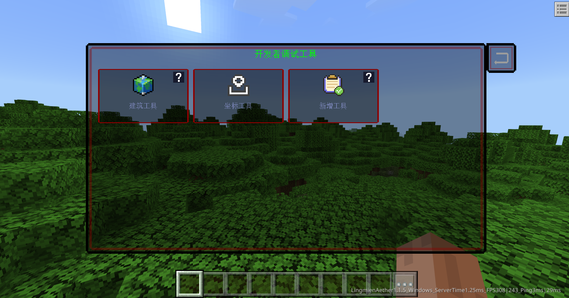 按下Tab键(暂不支持手机端通过UI触控或指令的方式打开,除非你接入了键盘)即可打开开发者调试工具内容,选中你想要使用的工具,当再次选中该工具时,将退出该调试工具。